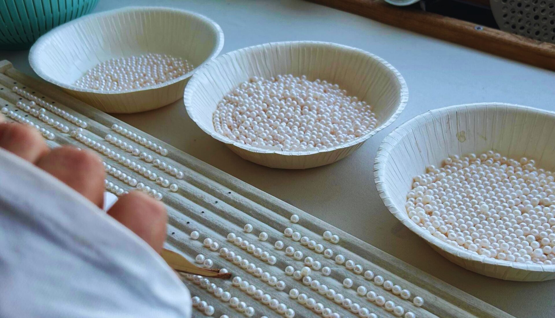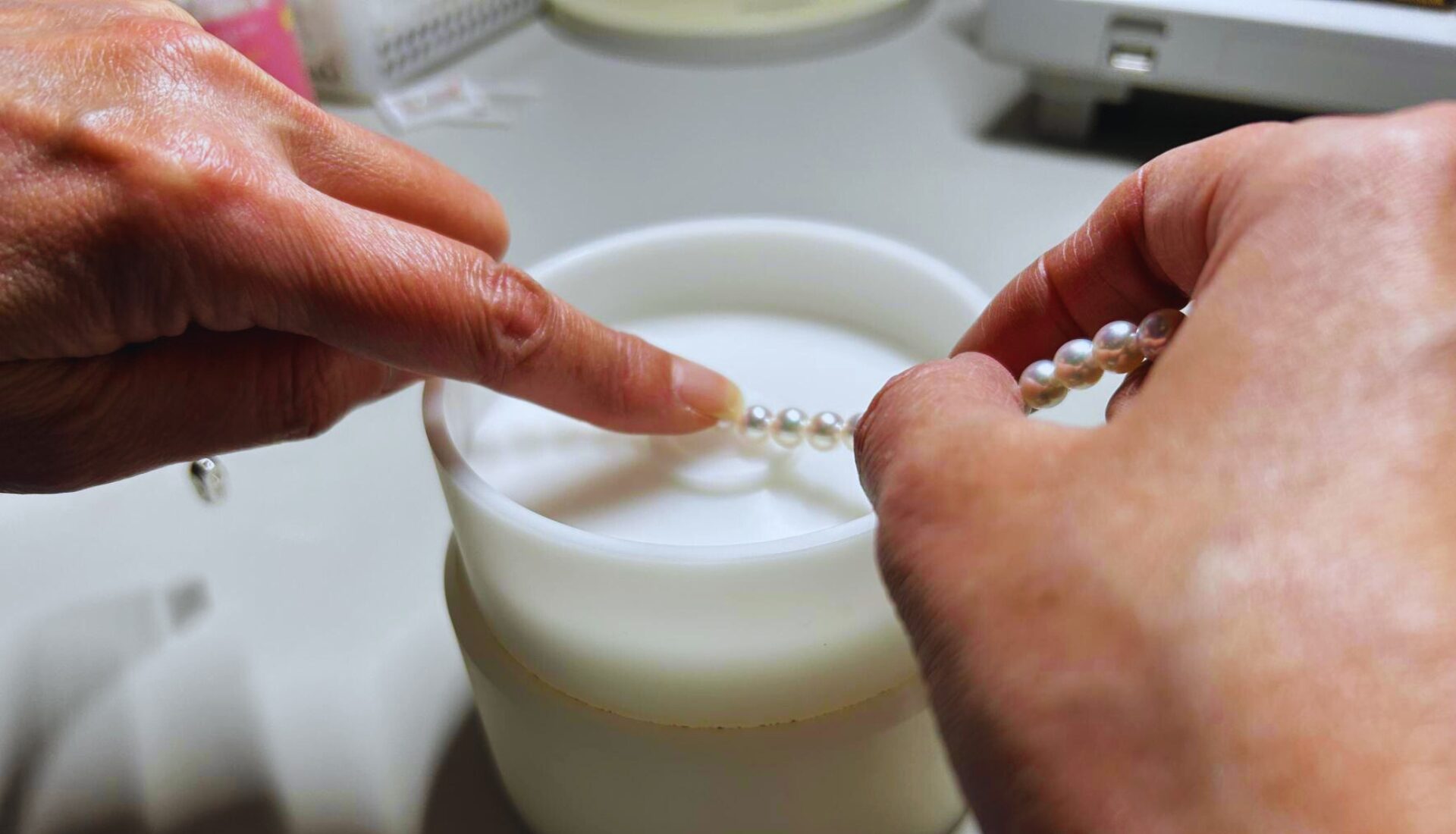 真珠の仕入れから加工、販売を一貫体制でおこなっています。